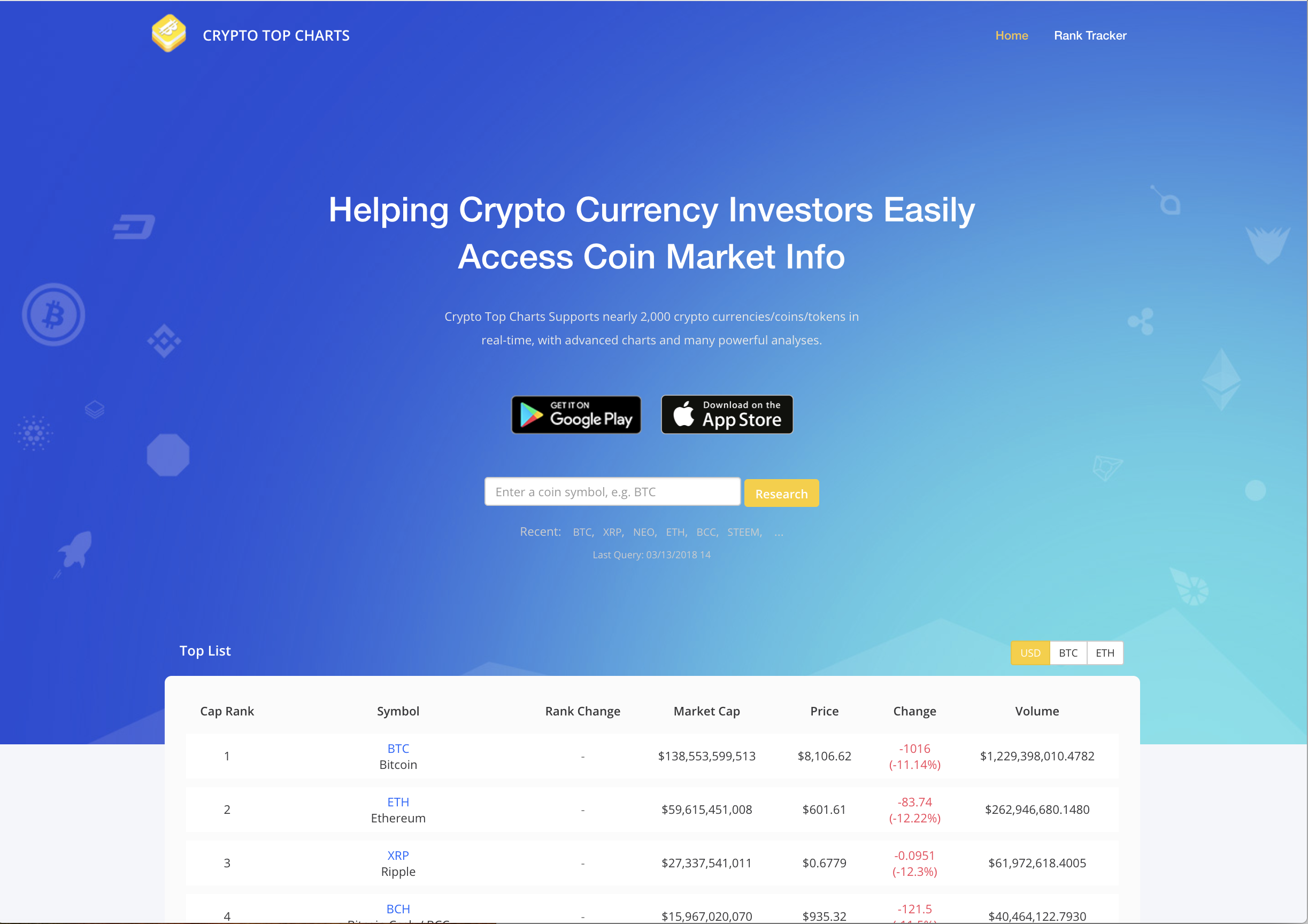 Tracking the top Ranked coins and tokens